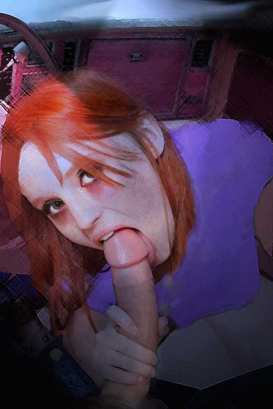 In my furry, the other cheek slips off the seat. I am on the floorboard now. I like the floorboard. The rubber floor mats are rough against my knees. But I can get a better angle from here. I love sucking him! The top down motions suits him. I can feel him twitch.